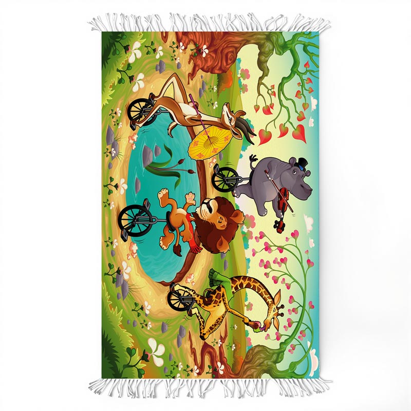 فرش اتاق بازی طرح حیوانات با جنس شانل و نمد، ضد لغزش و استپدار. انتخابی شاد، ایمن و آموزشی در ابعاد متنوع و قیمت مناسب برای اتاق کودک.