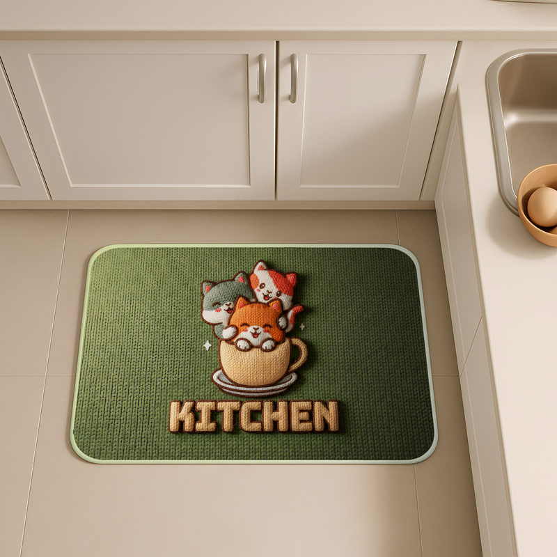 این پادری با ابعاد استاندارد ۵۰ × ۸۰ سانتی‌متر طراحی شده است؛ اندازه‌ای کاربردی که به‌سادگی جلوی سینک ظرفشویی، کنار کابینت‌ها یا ورودی آشپزخانه قرار می‌گیرد. نه راه را می‌گیرد، نه کوچک است—به اندازه کافی کاربردی و خوش‌چیدمان.